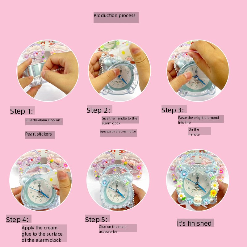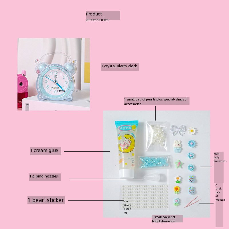 Clock For Bedrooms Bedside, Children’S Creative Cartoon Cream Glue Handmade Homemade Student Clock Birthday Gift To Kids