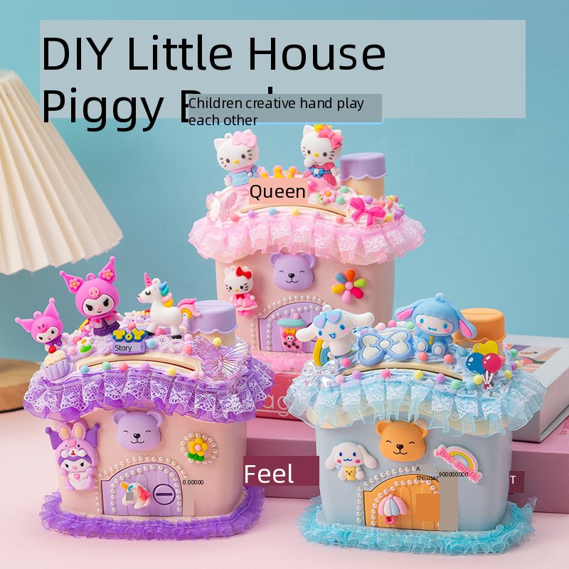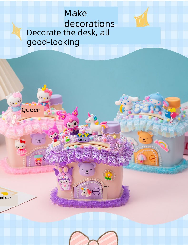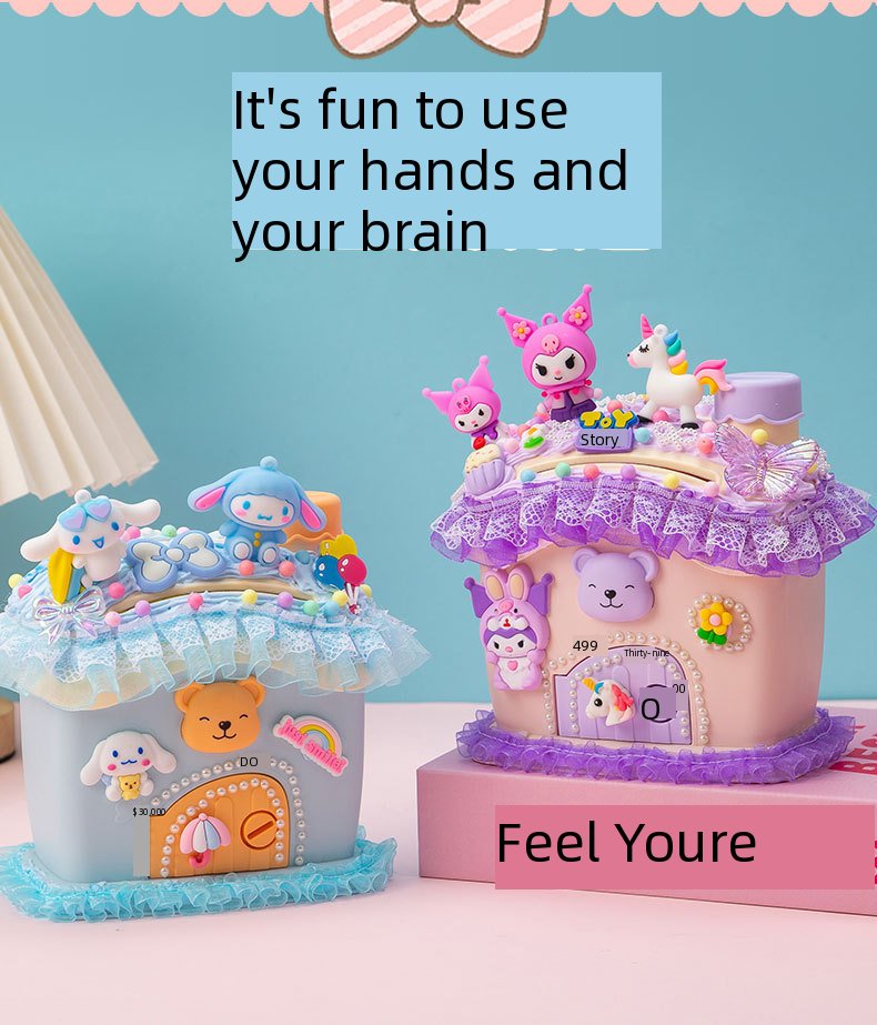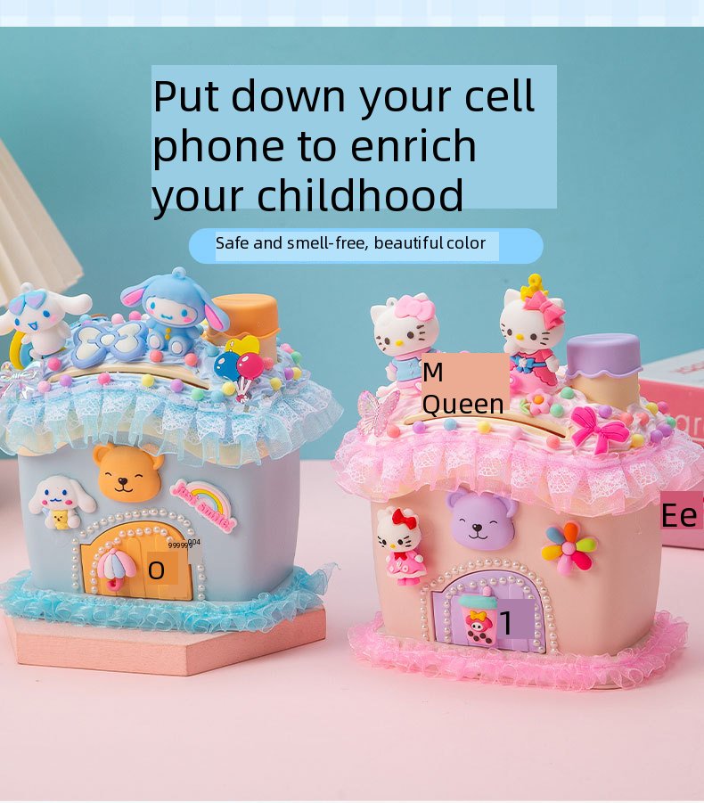 Cream gum piggy bank, children’s handmade DIY material package, girls’ cartoon mushroom house piggy bank, creative gift