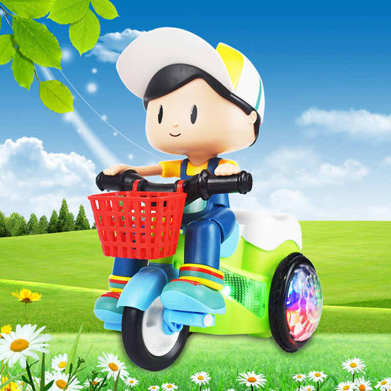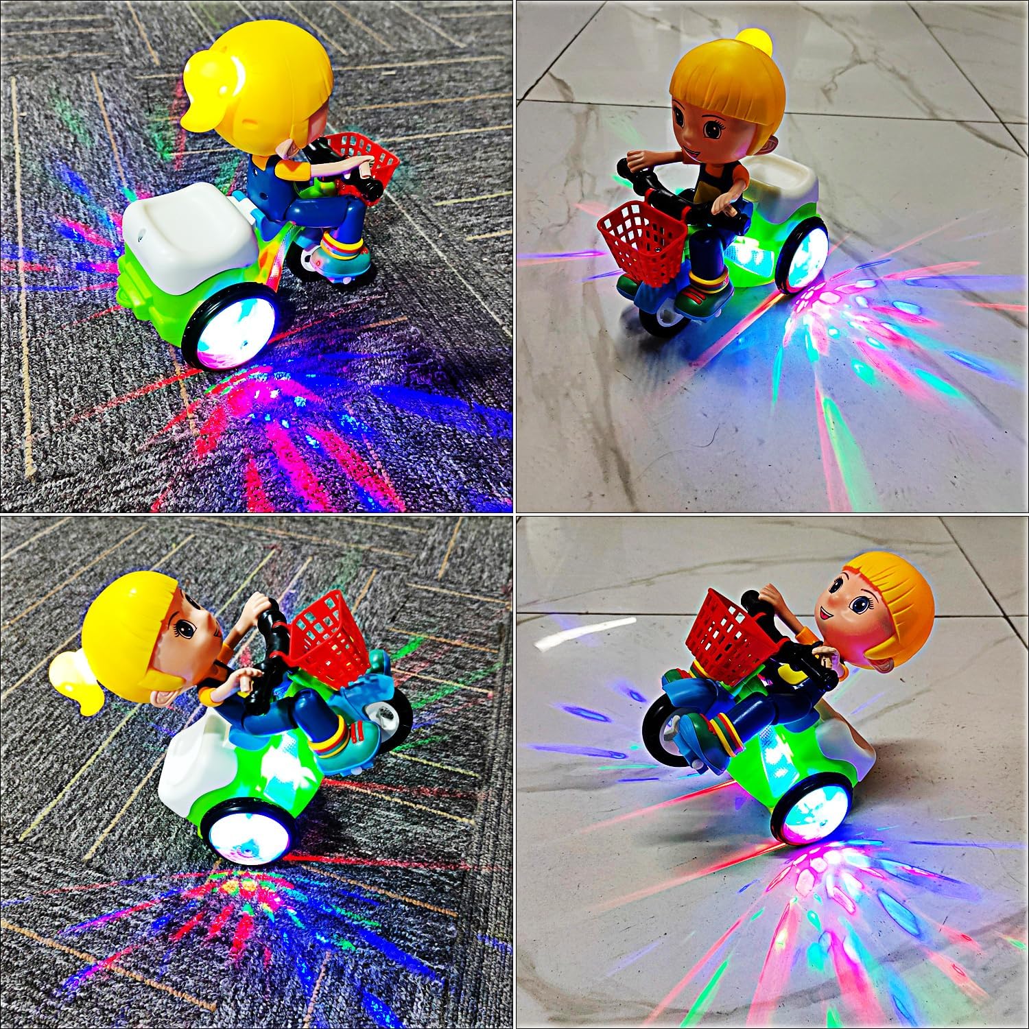 【Stunt Performance】The tricycle can drive forward, vertical 360 degree rotation. During the driving process, the legs of boy or girl will move up and down flexibly, just like riding a tricycle in real life.