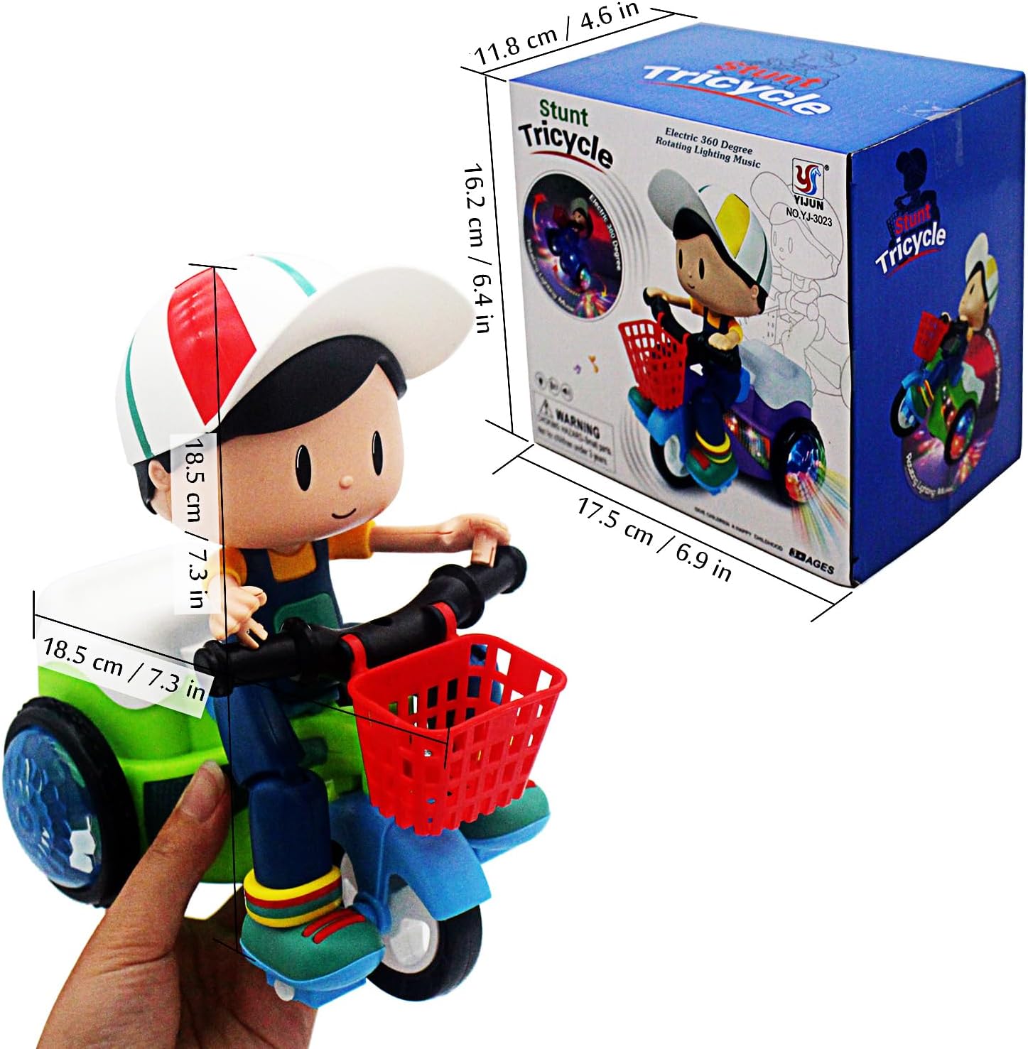 Baby Toddler Electric Tricycle Toy Cartoon Motorcycle Vehicle Stunt Performance, Music, Lights, Kids Birthday Gifts