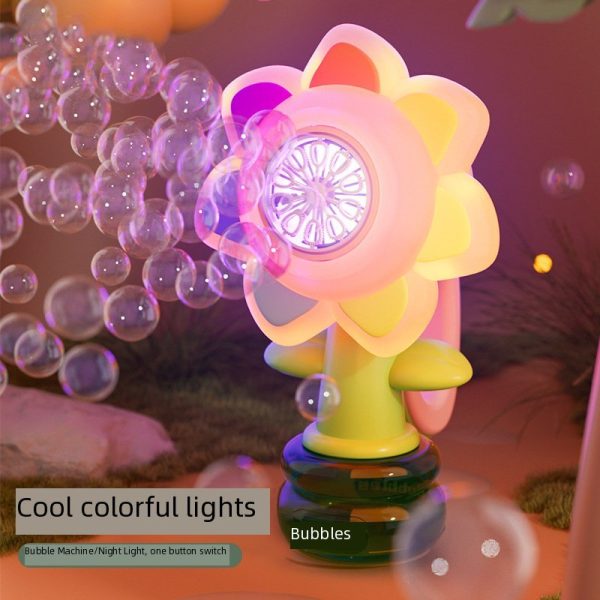 Sun Flower Lights Music Bubble Machine Toys For Kids Outdoor Soap Water Toys Electric Automatic Bubble Blower Toy Kids Bubble Toys Cute Seven Color Flower Bubble Gun Toys Soap Bubble Machine With Light For Kids Summer