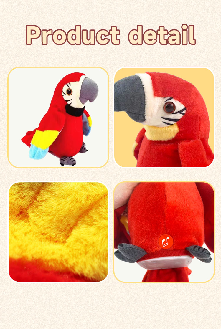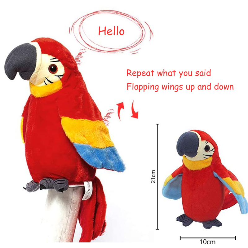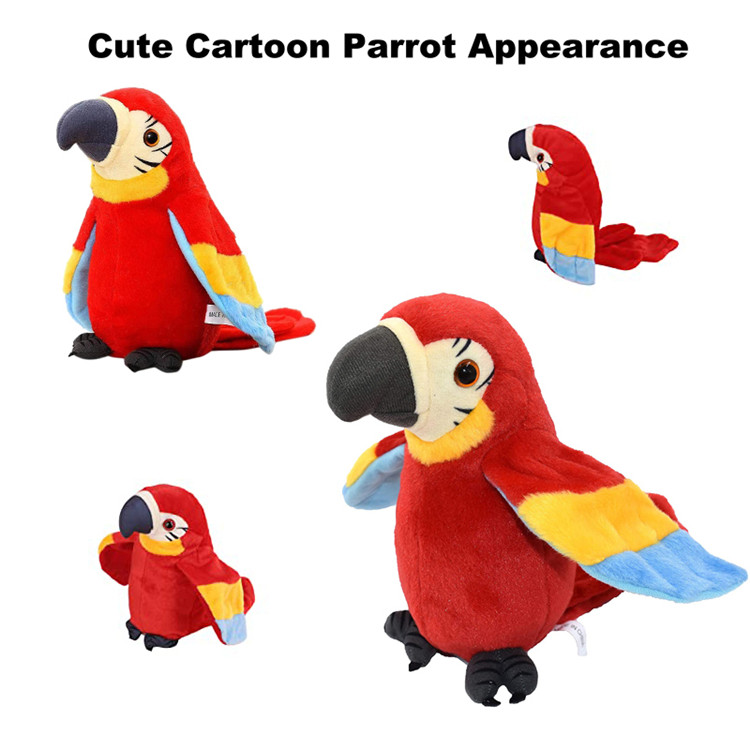 - Features: speaking Parrot acoustic simulation designed and produced by a team of professionals, repeat what you say, no matter what you say. Can read all the spoken, singing, words, English, and even animal sounds.Talking Parrot funny pronunciation Electric animal plush toy