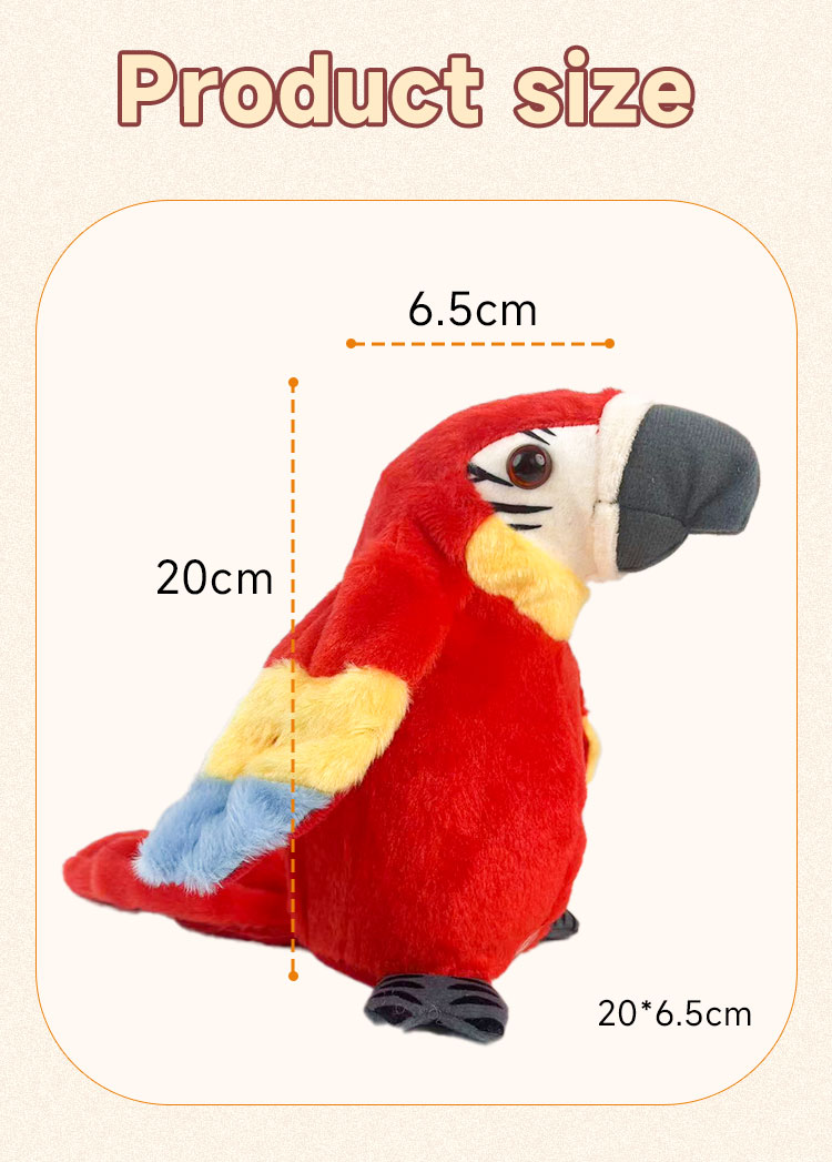 - Turn on the switch, speak to it, talk to it. Wings will shake the body will shake, you can stimulate the child's visual senses。speak Parrot, repeat All languages, words,songs.Bring you unlimited fun. Is to send friends, send their children, send the best gift Lover.