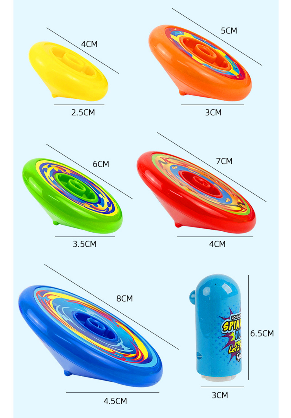 - EASY SPIN MECHANISM: Simply find a flat surface, attach the top, wind three times, and press to launch. These UFO spin tops rotate mesmerizingly, captivating kids and adults alike.